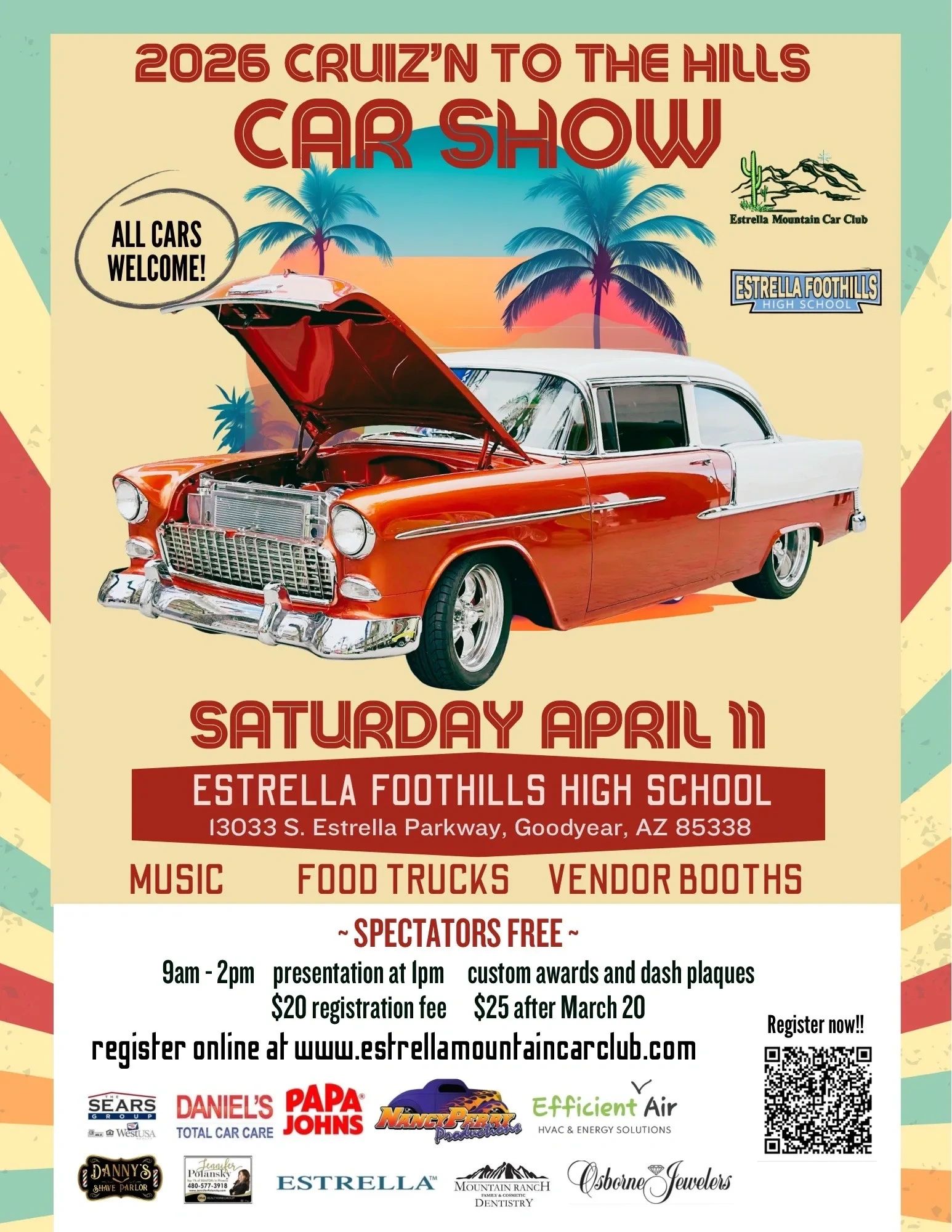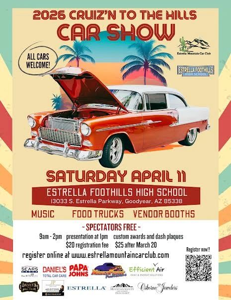 Estrella Mountain is one of Arizona’s largest master-planned communities and among Goodyear’s fastest-growing neighborhoods with more than 8,000 households. Sponsoring this car show is an excellent opportunity to establish or strengthen your company’s connection with this vibrant community.